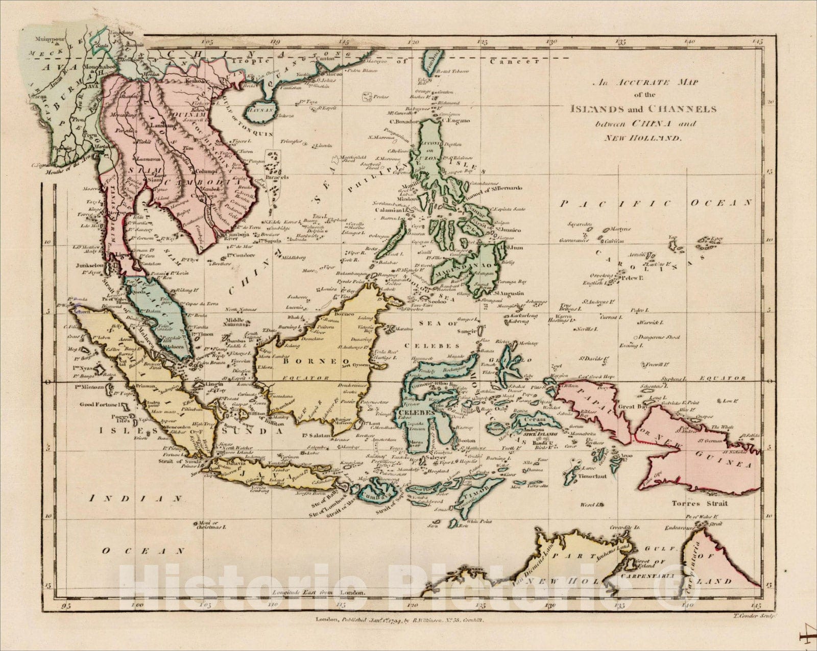 Historic Map : An Accurate Map of the Islands and Channels between China and New Holland, 1794, Robert Wilkinson, Vintage Wall Art