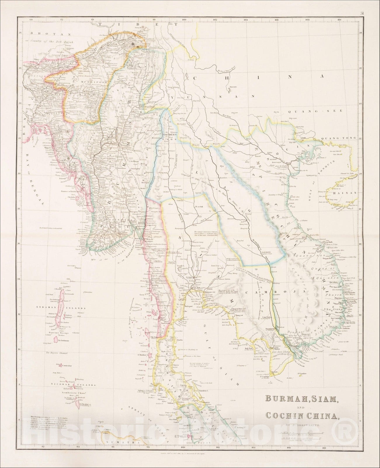 • .Historic Map : Burmah, Siam and Cochin China, 1840, John Arrowsmith, Vintage Wall Art