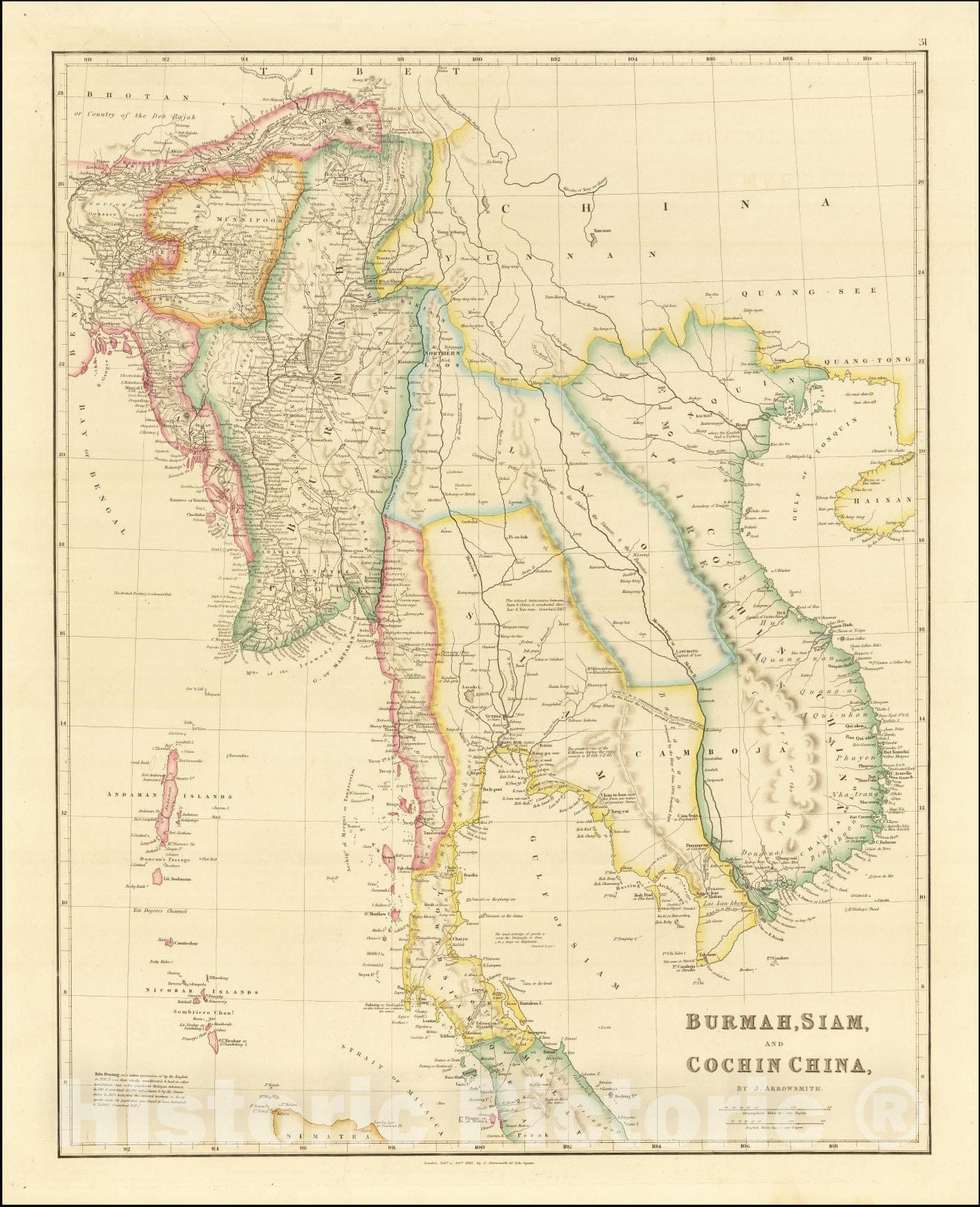 Historic Map : Burmah, Siam and Cochin China, 1842, John Arrowsmith, Vintage Wall Art