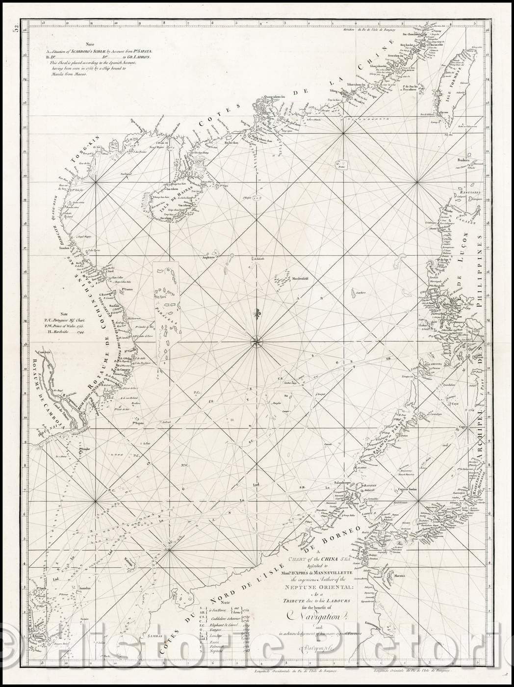 Historic Map - A Chart of the China Sea Inscribed to Monsr. d'Apres de Mannevillette the Ingenious Author of the Neptune Oriental: 1770 - Vintage Wall Art