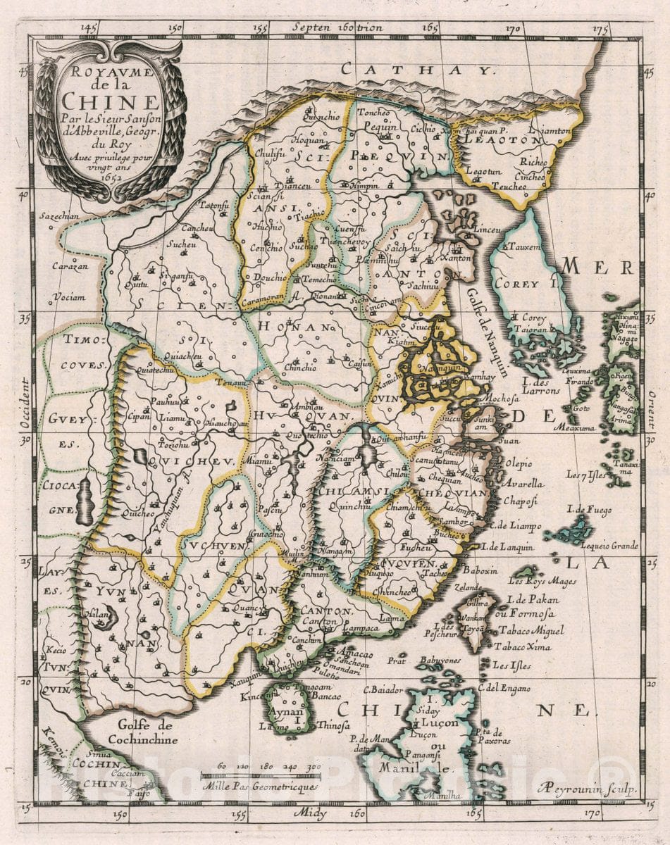 Historic Map : China, , Asia Royavme de la Chine : Par le Sieur Sanson d'Abbeville 1652, Vintage Wall Art