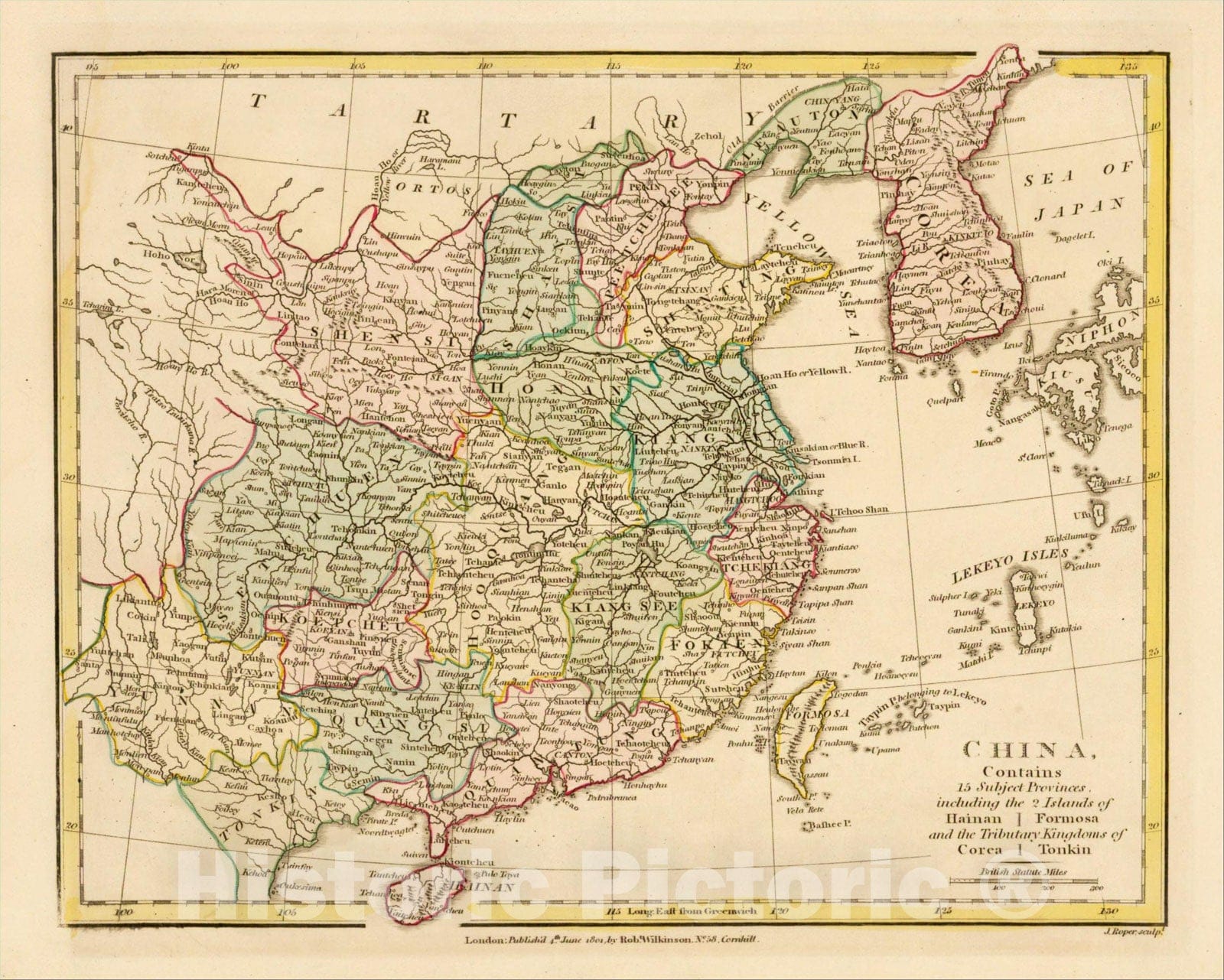 China, Contains 15 Subject Provinces, including the 2 Islands of Hainan Formosa and the Tributary Kingdoms of Corea Tonkin, 1801
