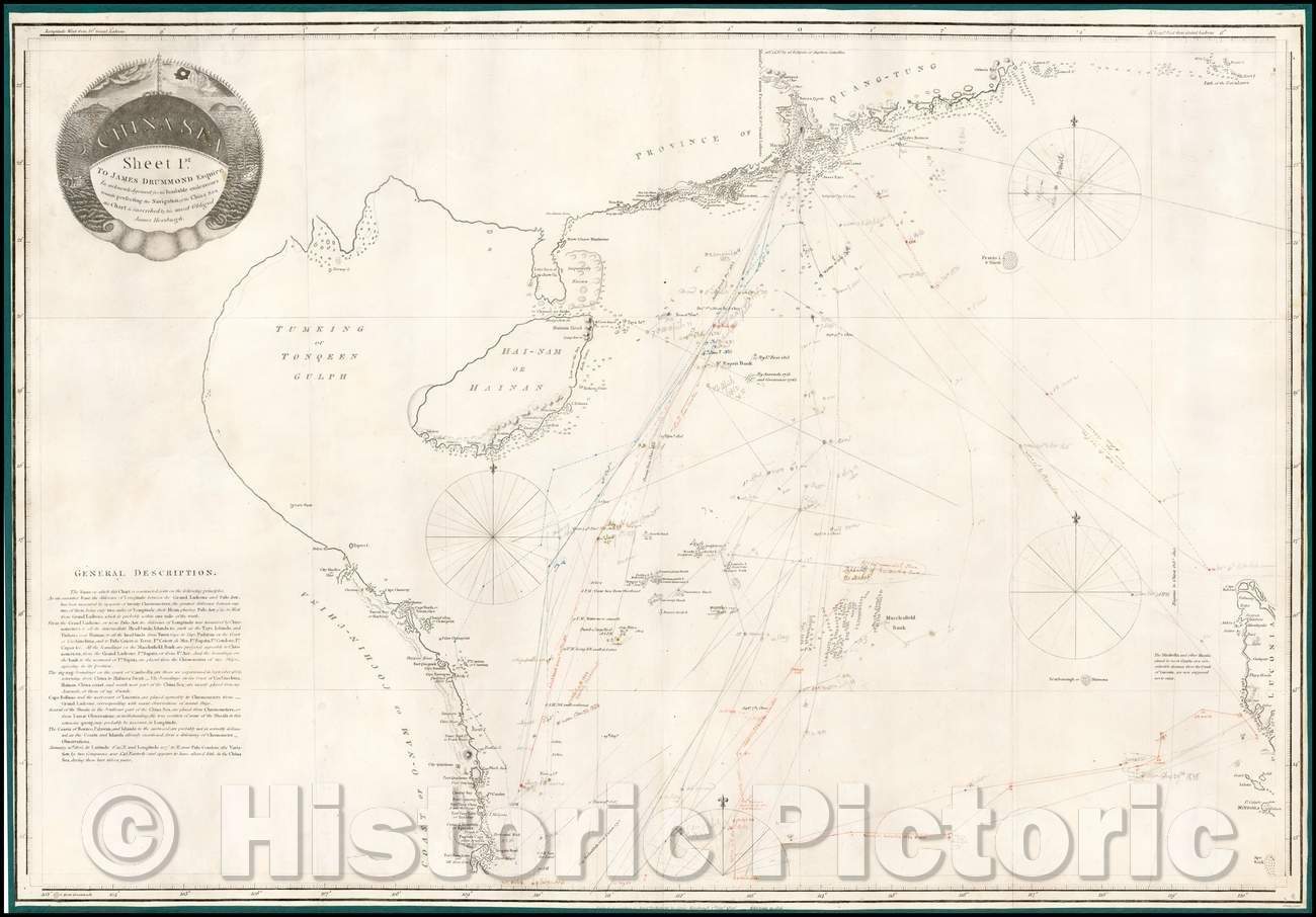 Historic Map - China Sea Sheet 1st. To James Drummond Esquire/Navigation of the China Sea, 1806 - Vintage Wall Art