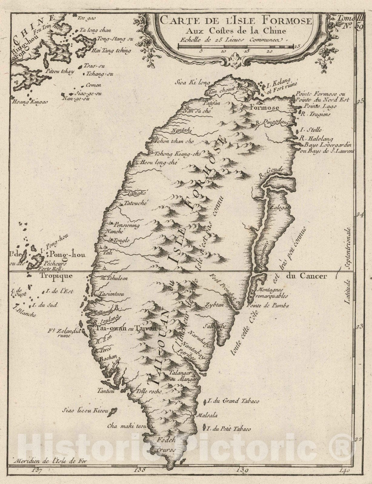 Historic Map : China; Taiwan, 1764 Carte de L'Isle Formose et aux costes de la Chine , Vintage Wall Art