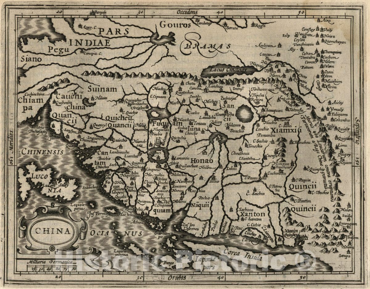 • .Historic Map : China. (to accompany) Atlas Minor Gerardi Mercatoris, 1607 Atlas - Vintage Wall Art
