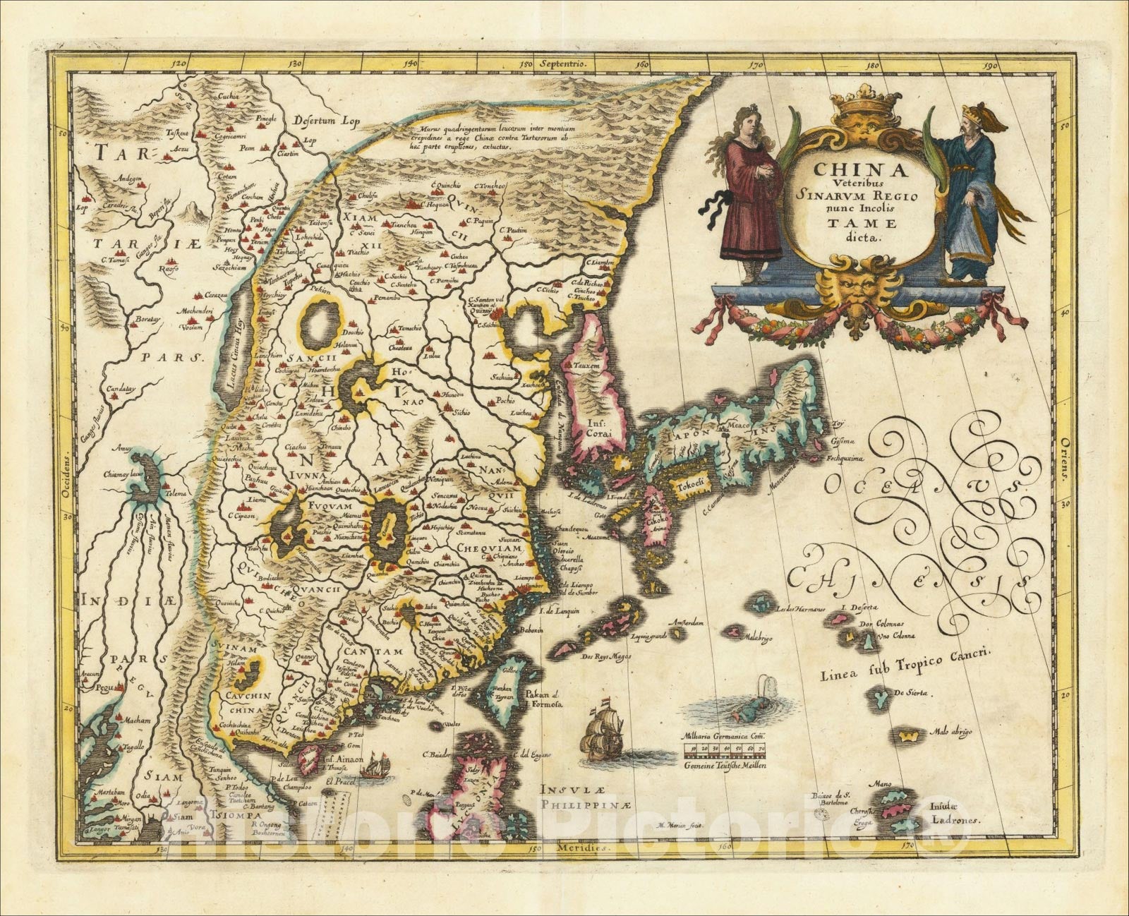 Historic Map : China Veteribus Sinarum Regio numc Incolis Tame dicta, c1636, Matthaus Merian, Vintage Wall Art