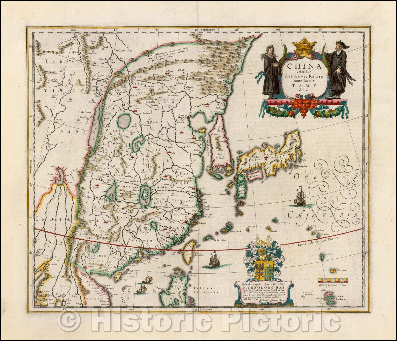 Historic Map - China Veteribus Sinarum Regio nunc Incolis Tame, 1642, Willem Janszoon Blaeu - Vintage Wall Art