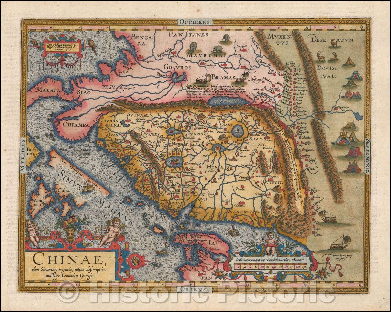 Historic Map - Chinae, olim Sinarum regionis nova descriptio auctore Ludovico Georgio, 1595, Abraham Ortelius v2