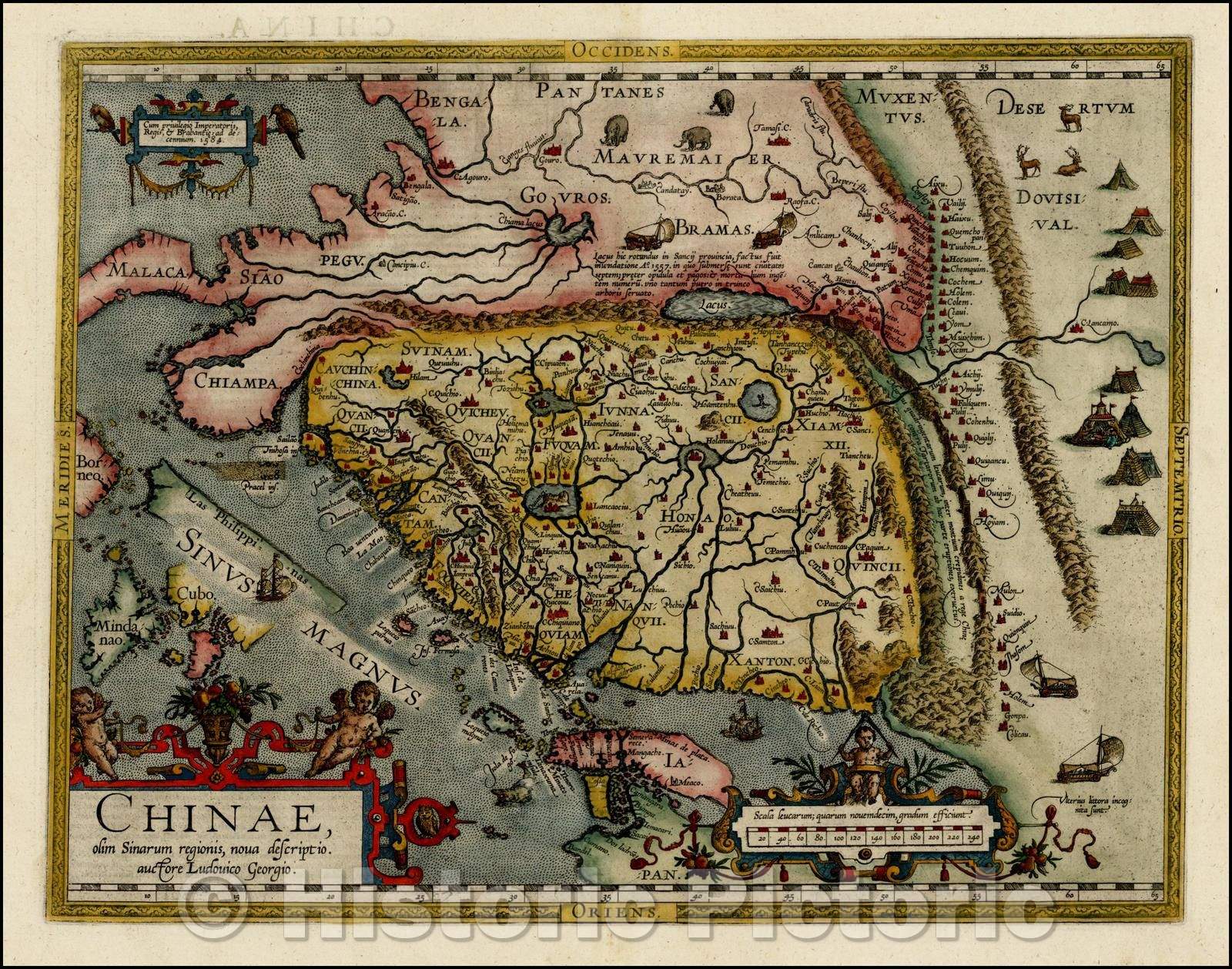 • .Historic Map - Chinae, olim Sinarum regionis nova descriptio auctore Ludovico Georgio, 1587, Abraham Ortelius - Vintage Wall Art