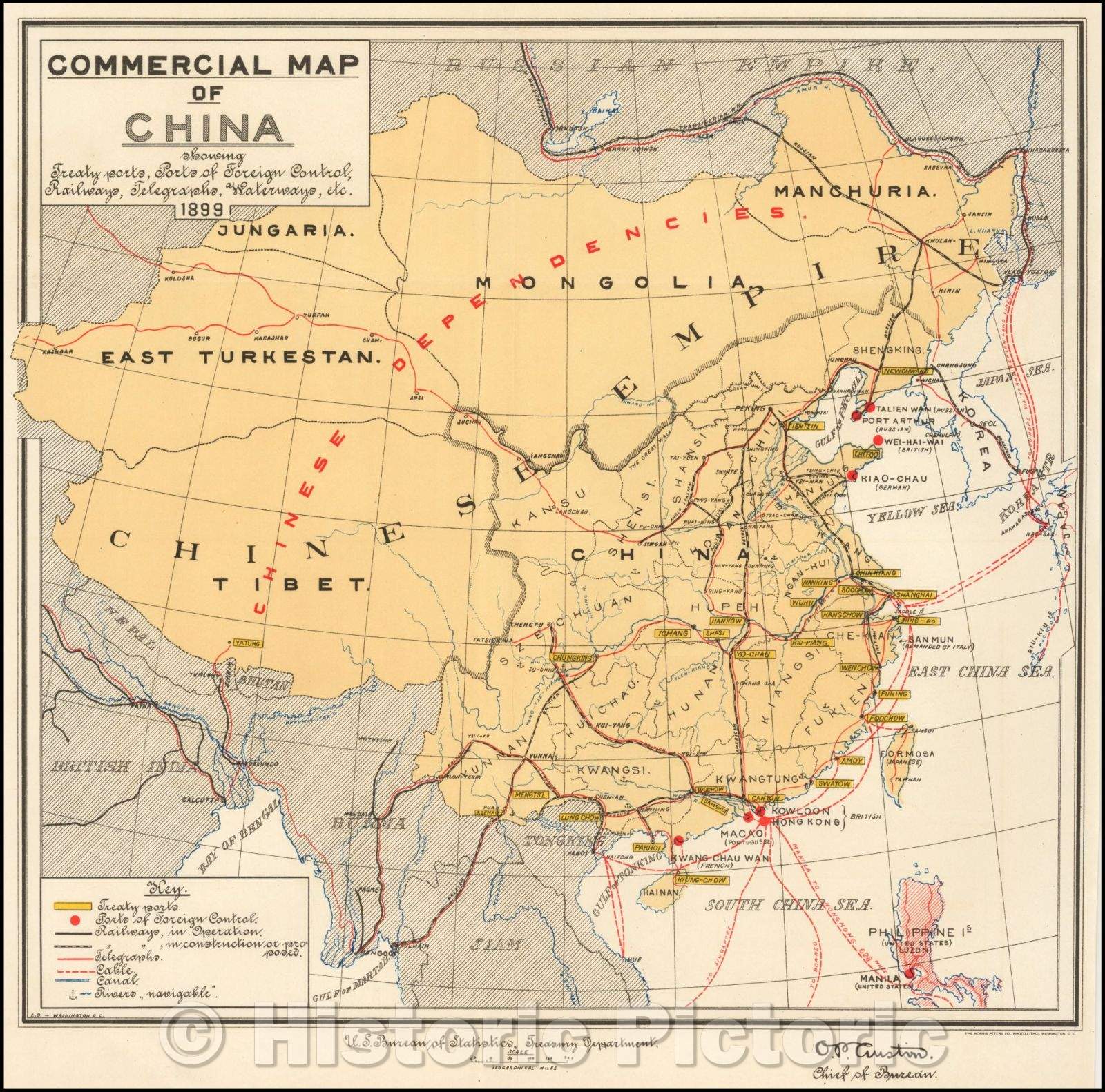 Commercial Map of China showing Treaty ports, Port of Foreign Control, Railways, Telegraphs and Waterways, etc. , 1899, Norris Peters Co.