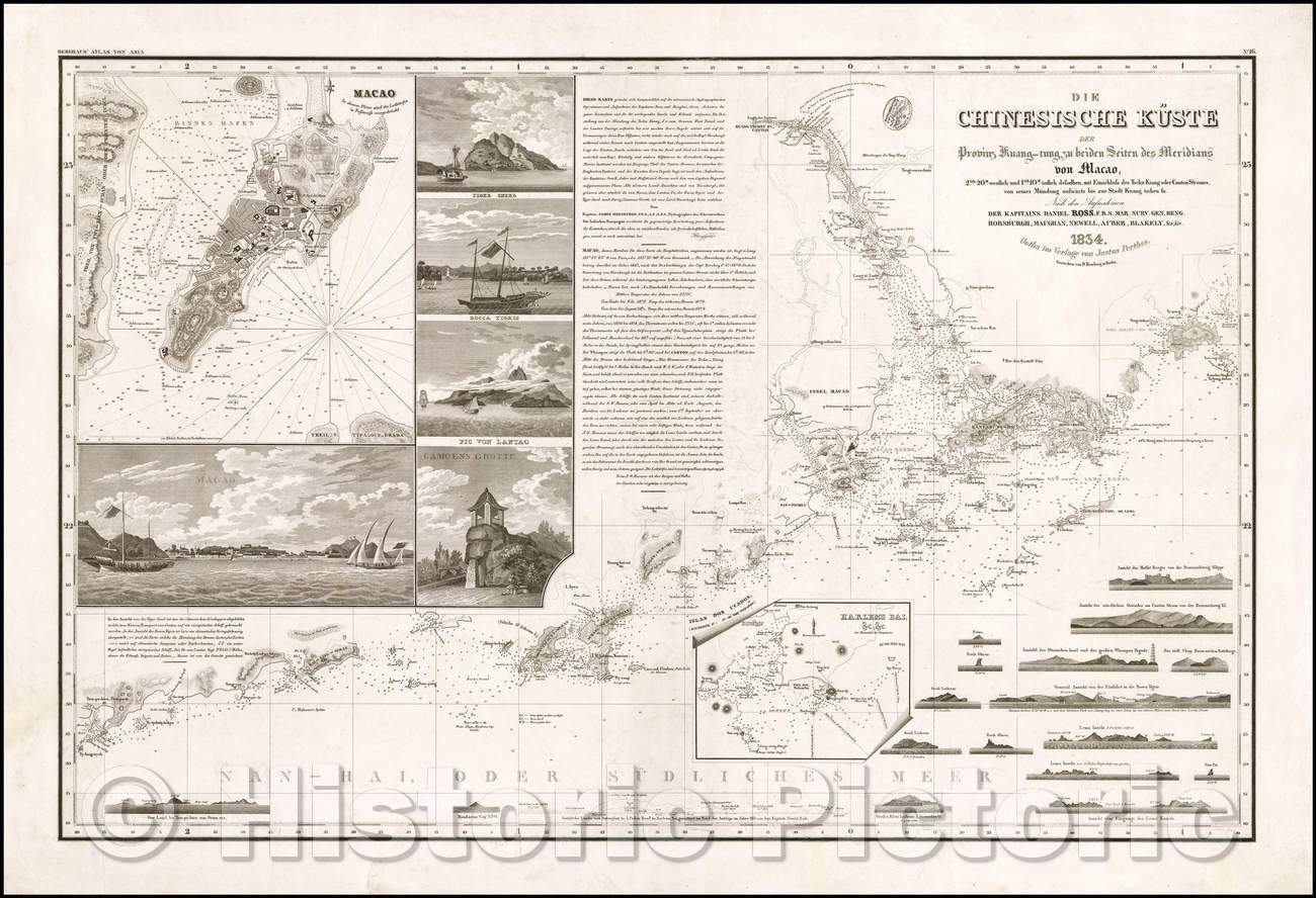 Historic Map - Die Chinesische Kuste der Provinz, Kuang-tung/Heinrich Berghaus's Sea Chart of part of the coast of Southern China, 1834, Heinrich Berghaus - Vintage Wall Art