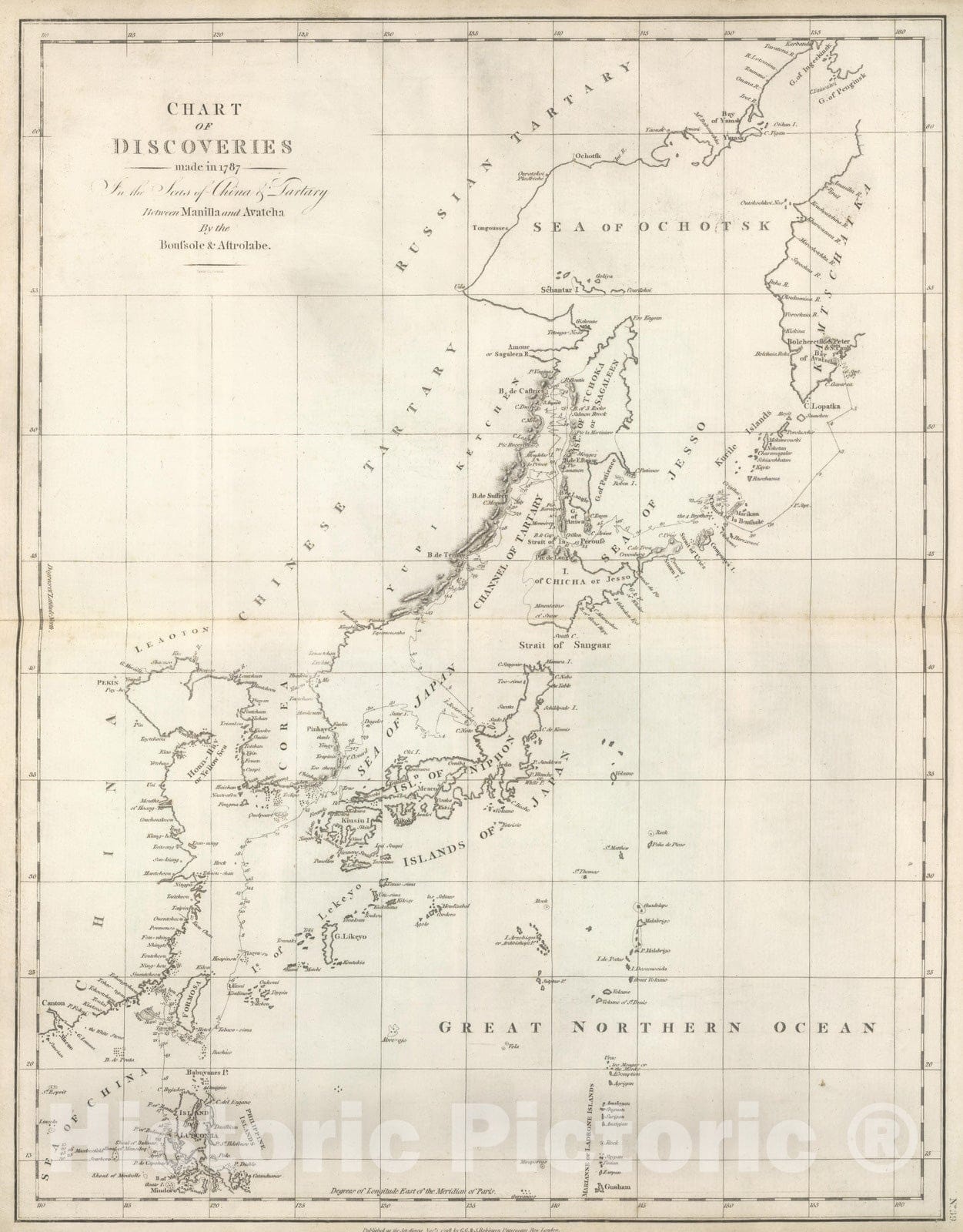 Historic Map : Exploration Book - 1799 Discoveries made in 1787 In the Seas of China and Tartary between Manilla and Avateha. - Vintage Wall Art