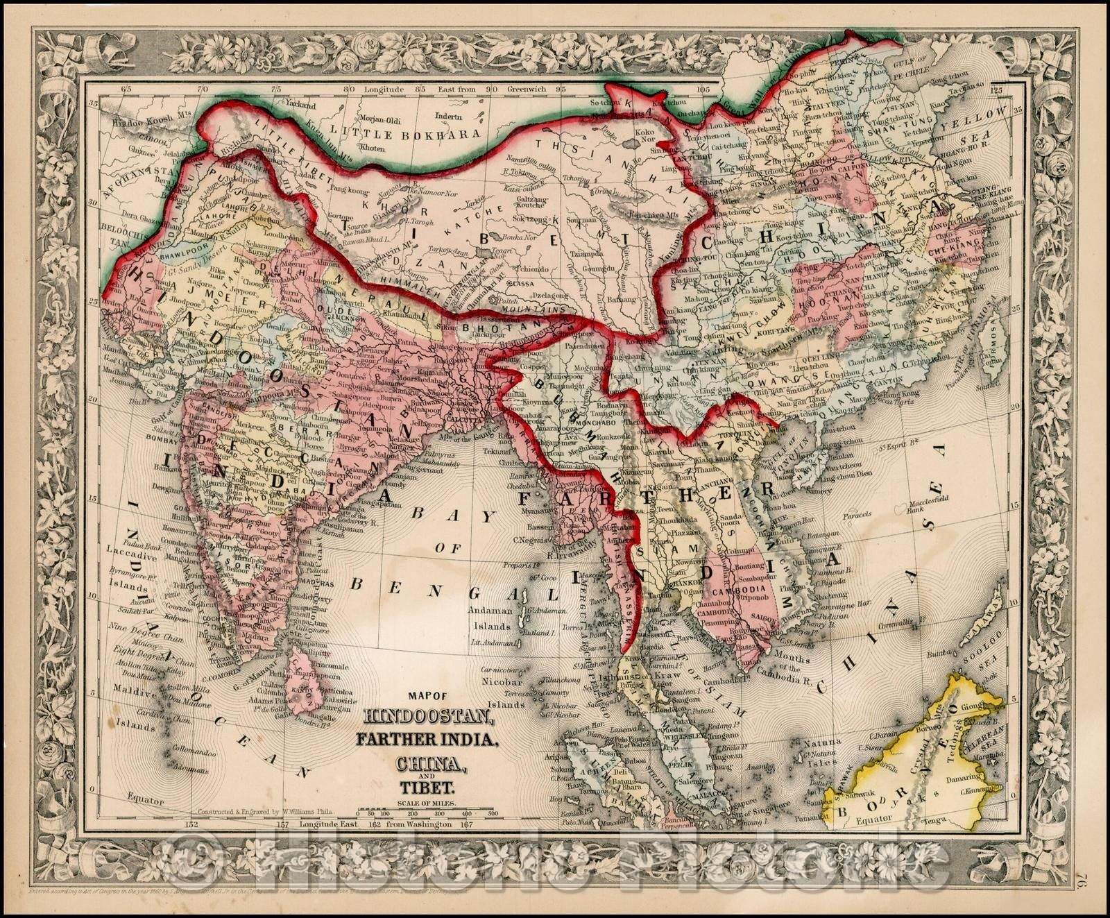 Historic Map - Map of Hindoostan, Farther India, China and Tibet, 1862, Samuel Augustus Mitchell Jr. - Vintage Wall Art
