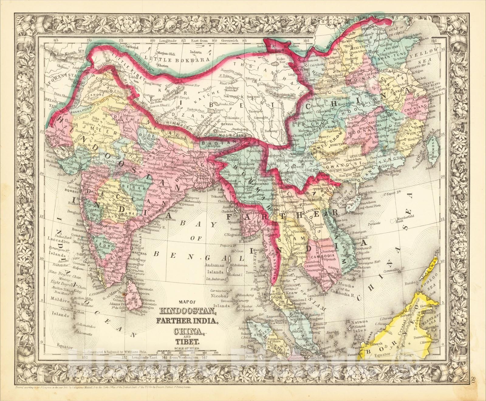 Historic Map : Map of Hindoostan, Farther India, China and Tibet, 1864, Samuel Augustus Mitchell Jr., Vintage Wall Art