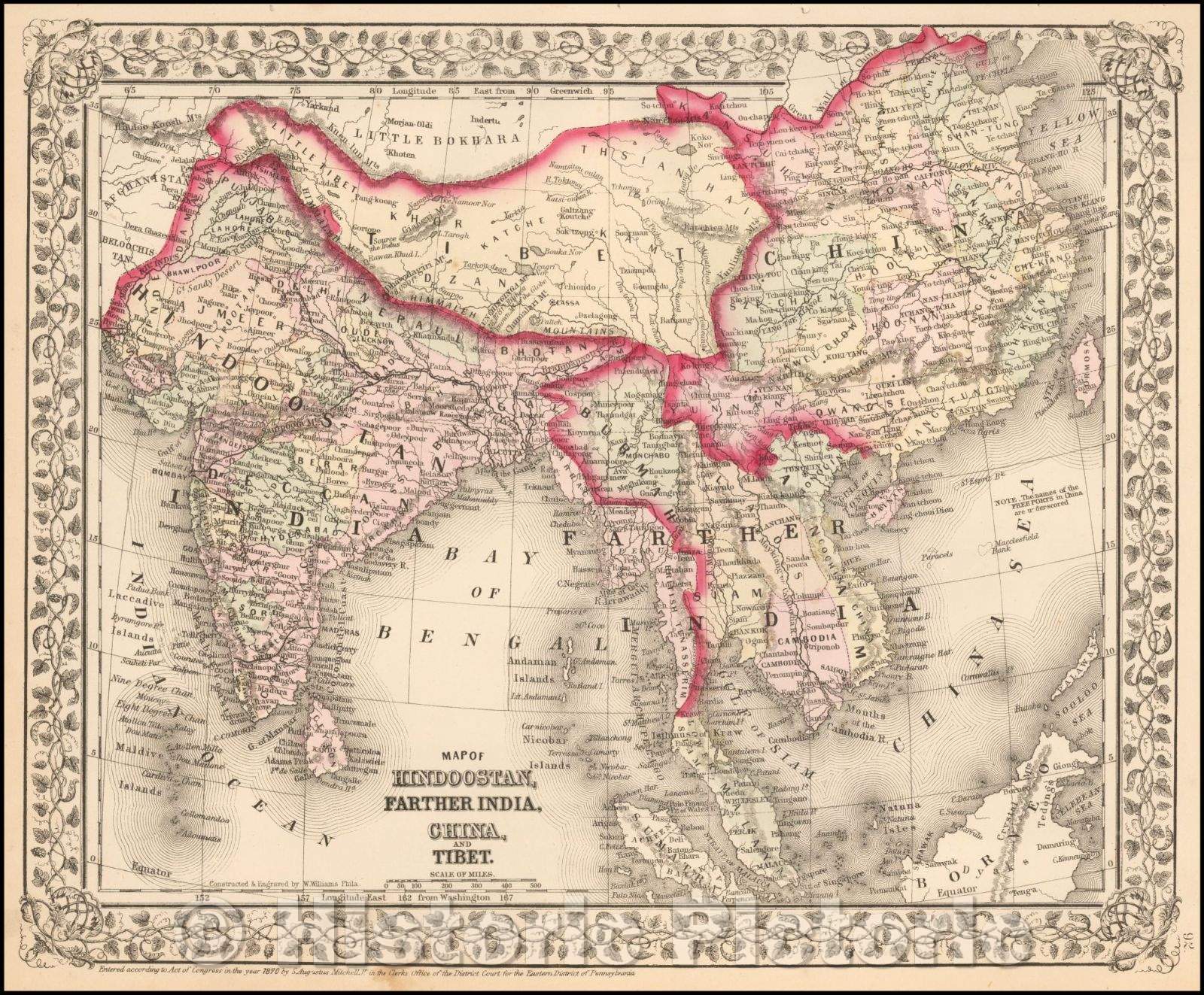 Historic Map - Map of Hindoostan, Farther India, China and Tibet, 1864, Samuel Augustus Mitchell Jr. v3