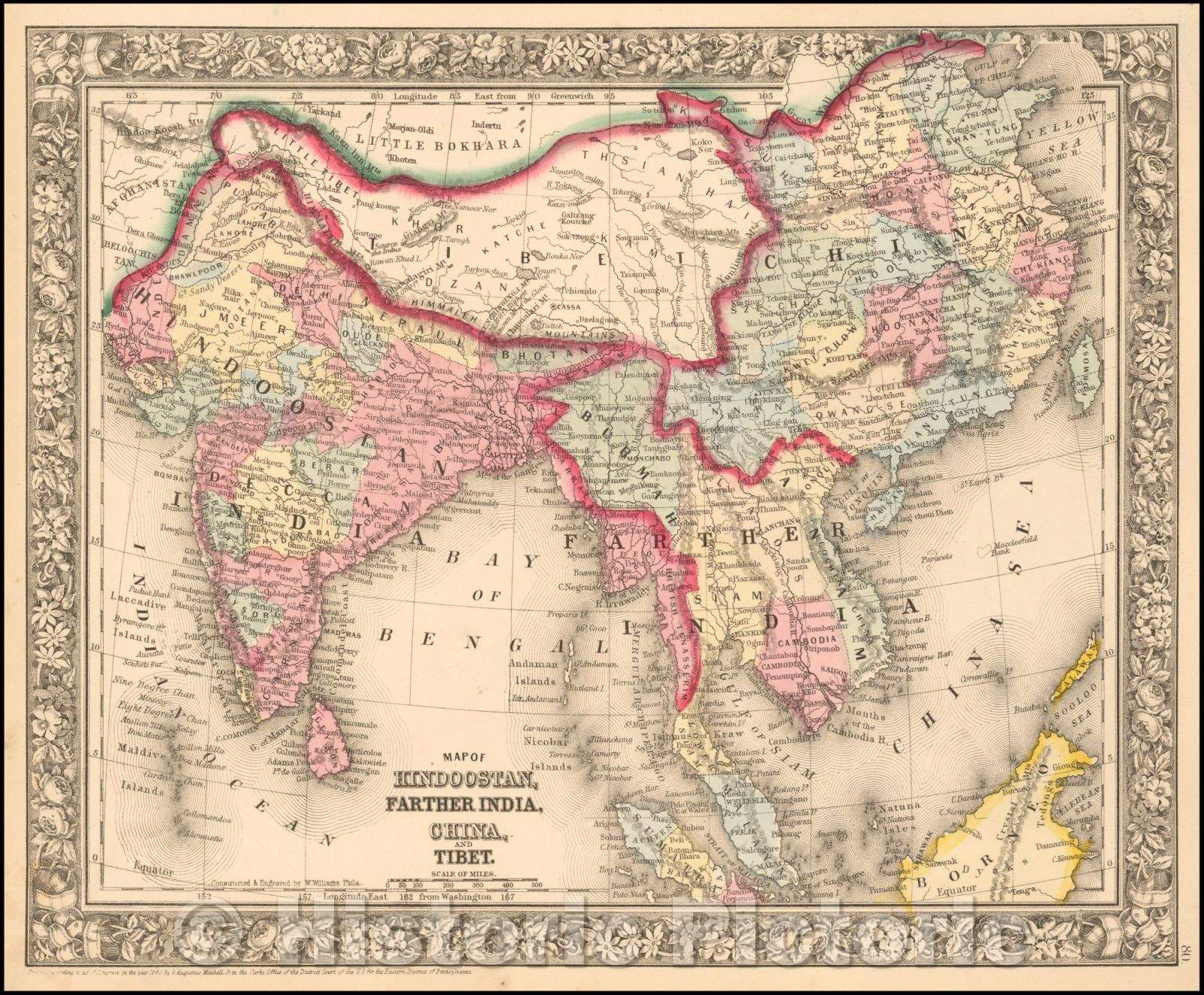 Map of Hindoostan, Farther India, China and Tibet, 1864, Samuel Augustus Mitchell Jr.