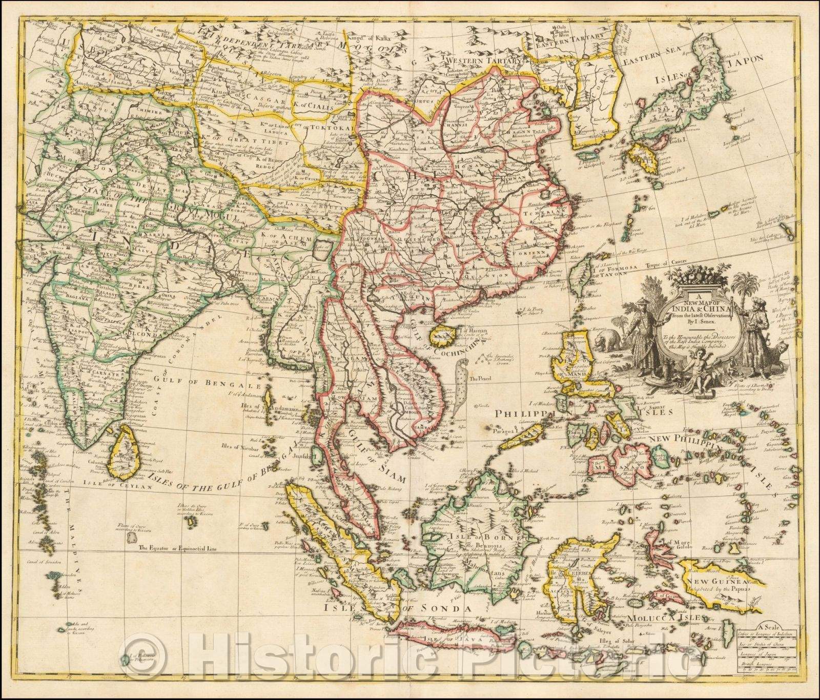 • .Historic Map - India & China From the latest Observations, 1721, John Senex - Vintage Wall Art