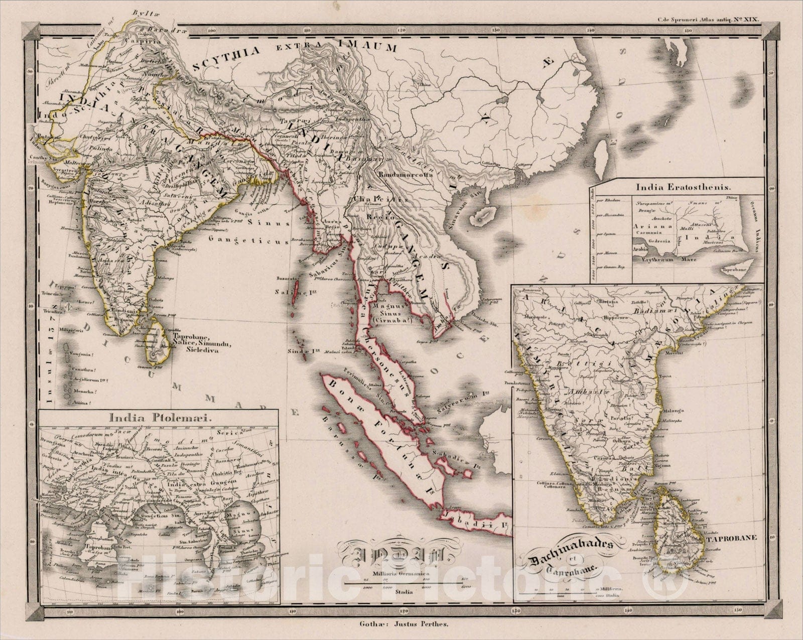 Historic Map : India (with insets of India Ptolemaei and Dachinabades et Taprobane, c1850, , Vintage Wall Art