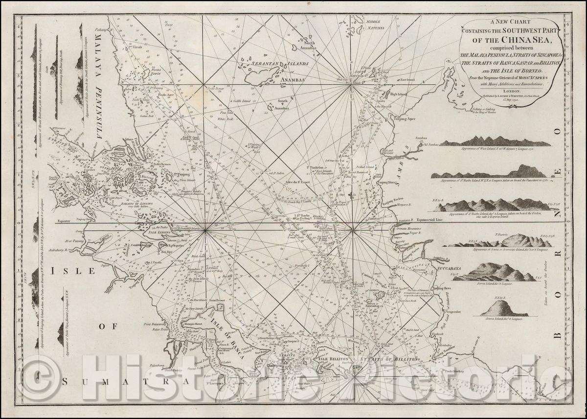 Historic Map - A New Chart Containing the Southwest Part of the China Sea, comprised between The Malaya Peninsula, Straits of Sincapore The Straits of Banca, 1794 - Vintage Wall Art