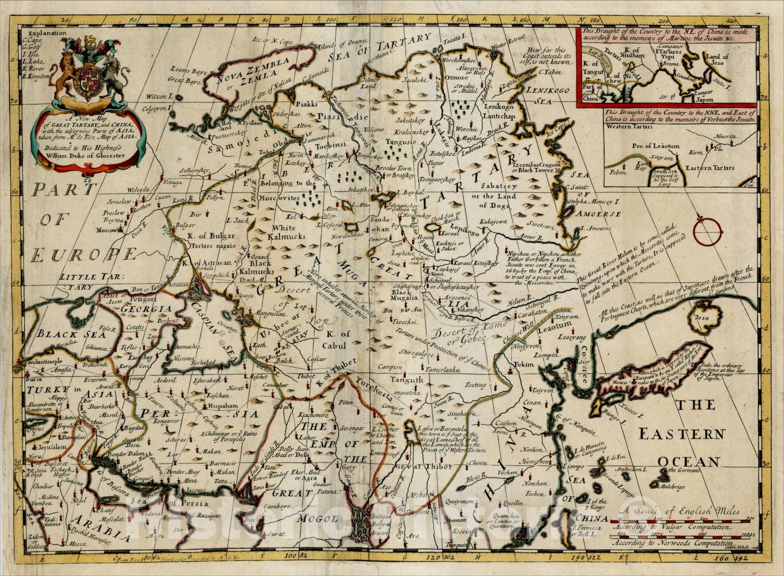Historic Map : A New Map of Great Tartary and China, with the adjoyning Parts of Asia, Taken from Mr. De Fer's Map of Asia, 1700, Edward Wells, v1, Vintage Wall Art