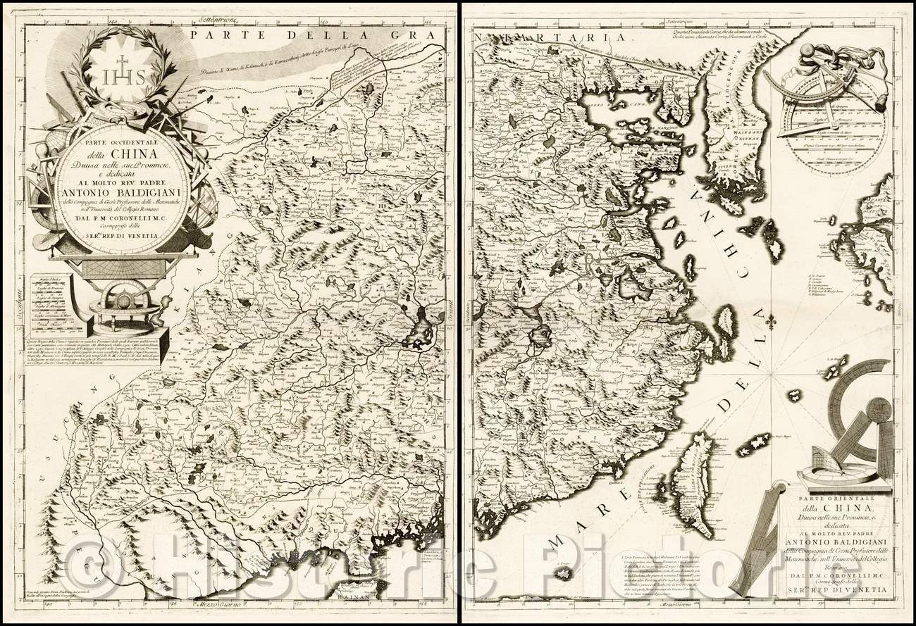 Historic Map - Parte Occidentale della China/Coronelli's 2-sheet Map of China, 1690, Vincenzo Maria Coronelli - Vintage Wall Art