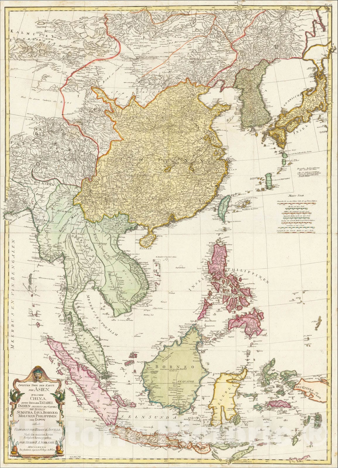 Historic Map : Zweiter Theil der Karte von Asien, welcher China, Einen Theil der Tartarei, 1786, Franz Anton Schraembl, Vintage Wall Art