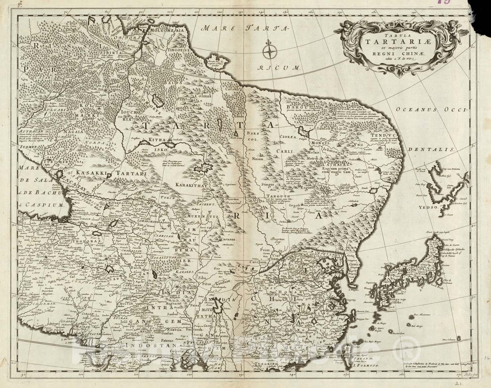 Historical Map, 1680 Tabula Tartariae et majoris partis Regni Chinae, Vintage Wall Art