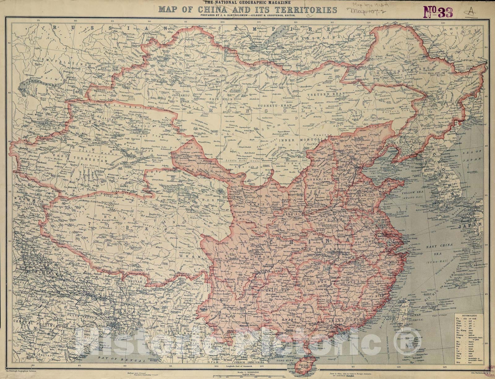 Historical Map, 1912 National Geographic Magazine map of China and its Territories, Vintage Wall Art