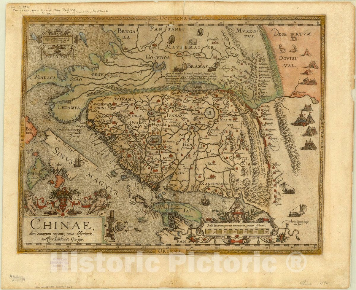 Map : China 1584 3, Chinae olim Sinarum regionis, nova descriptio , Antique Vintage Reproduction