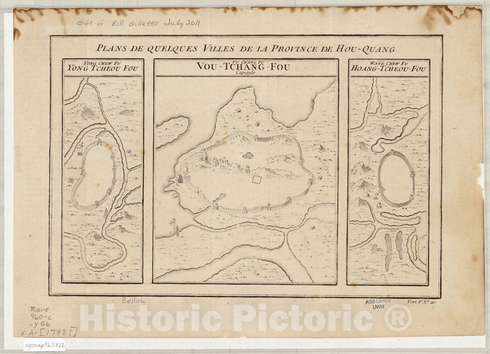 Map : China 1748, Plans de quelques villes de la province de Hou-Quang, Antique Vintage Reproduction
