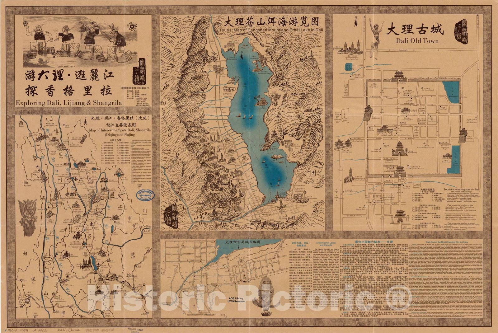 • Map : Dali Xian, China 2005 1, Exploring Dali, Lijiang & Shangrila, Antique Vintage Reproduction