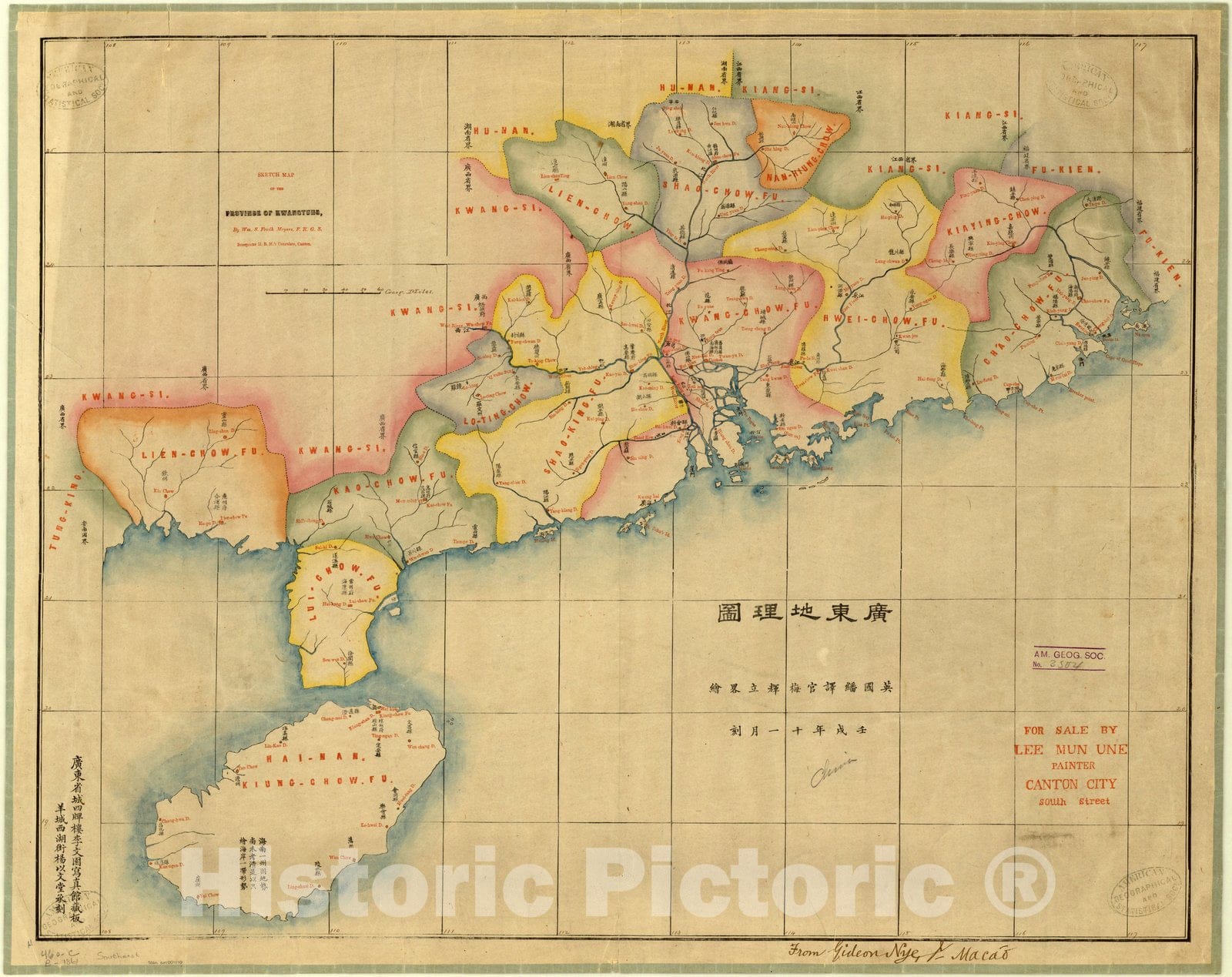 Map : Guangdong Sheng (China), Sketch map of the province of Kwantung , Antique Vintage Reproduction