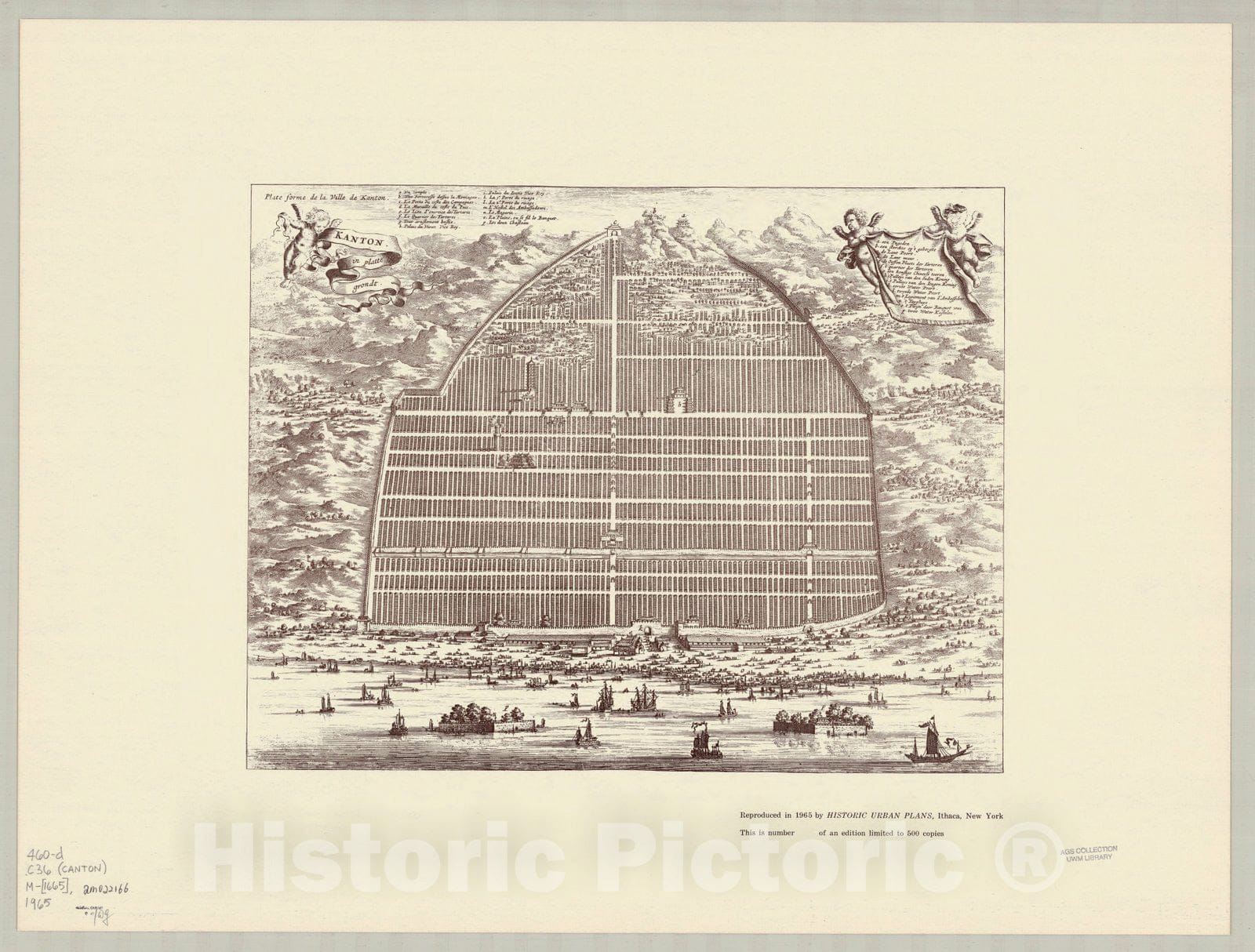 Map : Guangzhou, China 1665 1965, Kanton in platte grondt, Plate forme de la ville de Kanton, Antique Vintage Reproduction