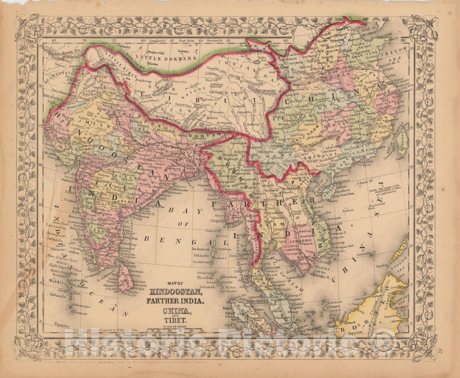 Historic Map : India & China 1867 , New General Atlas , Vintage Wall Art