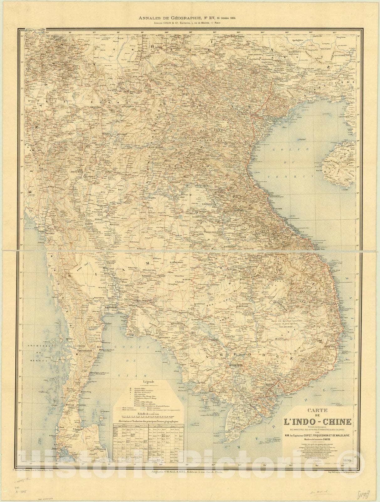 • Map : Indochina, Carte de l'Indo-Chine , Antique Vintage Reproduction