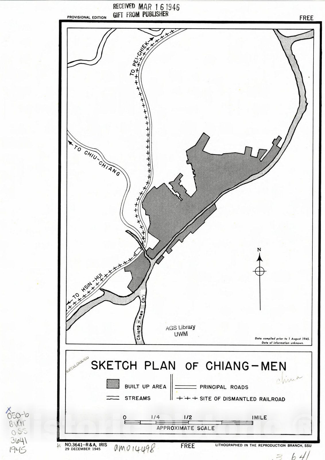• .Map : Jiangmen Shi, China 1945, Sketch plan of Chiang-men , Antique Vintage Reproduction