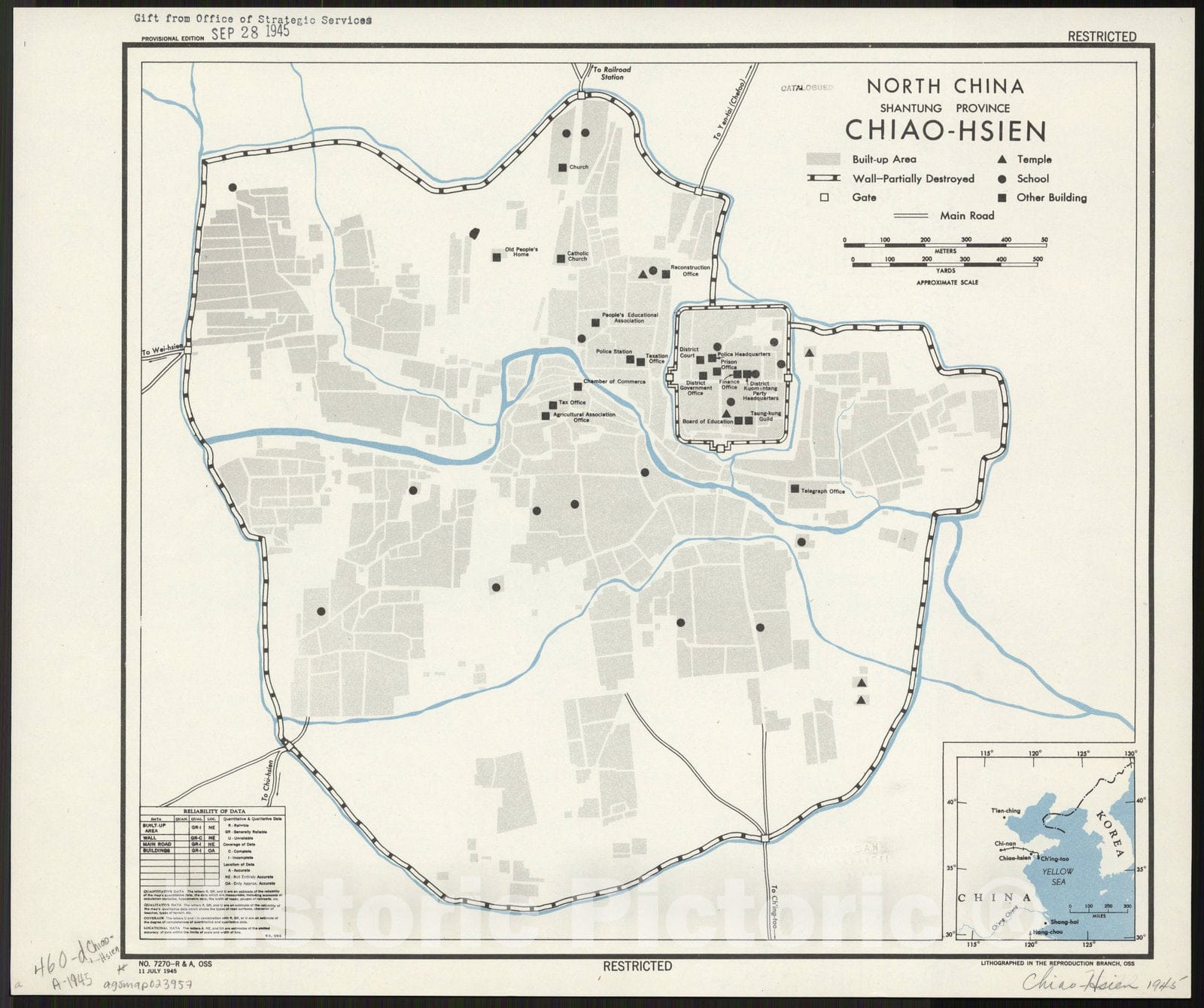Map : Jiaozhou, China 1945, North China, Shantung Province : town plan of Chiao-Hsien , Antique Vintage Reproduction