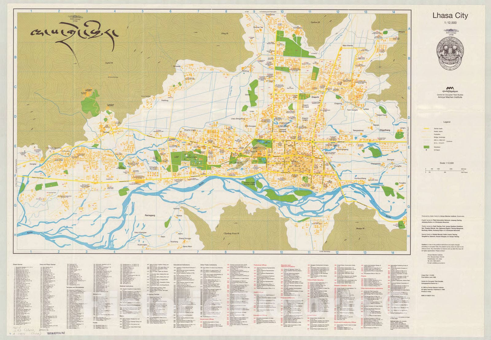 Map : Lhasa City, China 1995, Lha-sa gron khyer, Lhasa City, Antique Vintage Reproduction
