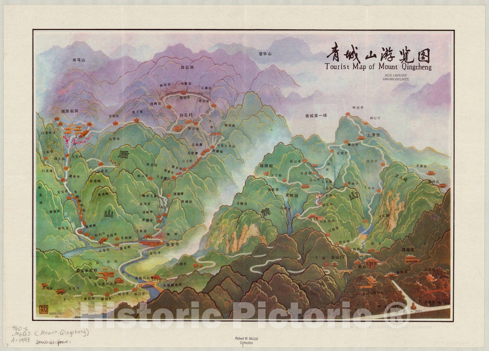 Historic Map : Mount Qingcheng, China 1993 2, Qingcheng Shan you lan tu, Tourist map of Mount Qingcheng ; Dujiang Yan you lan tu, Tourist map of Dujiangyan Irrigation Project