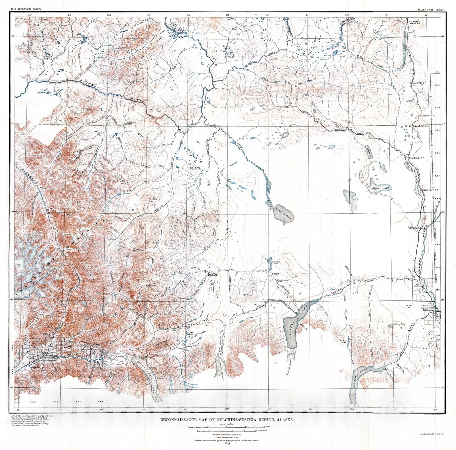 Map : The Nelchina - Susitna region, Alaska, 1918 Cartography Wall Art :