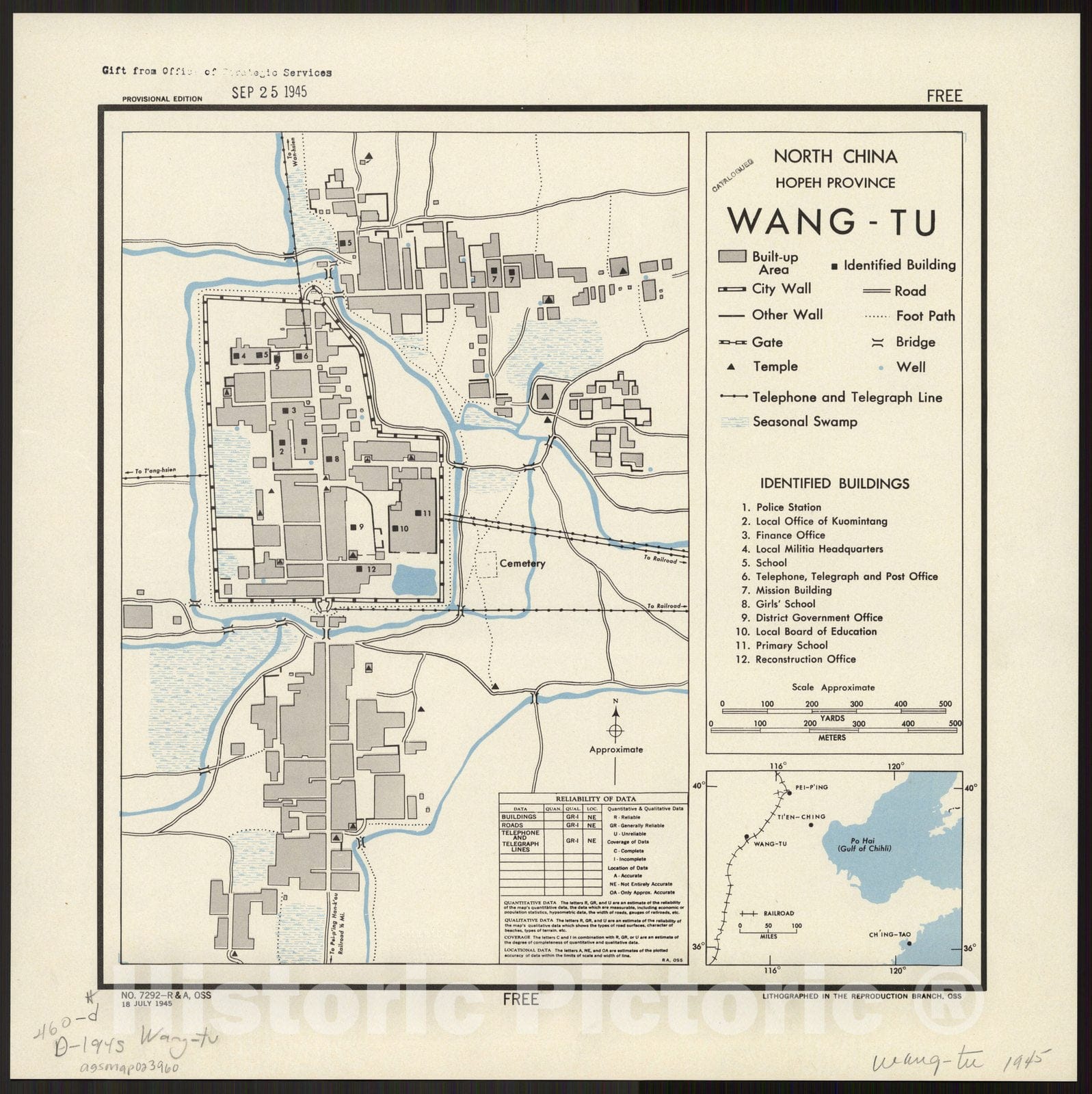 Map : Wangdu Xian, China 1945, North China, Hopeh Province, Wang-tu, Antique Vintage Reproduction