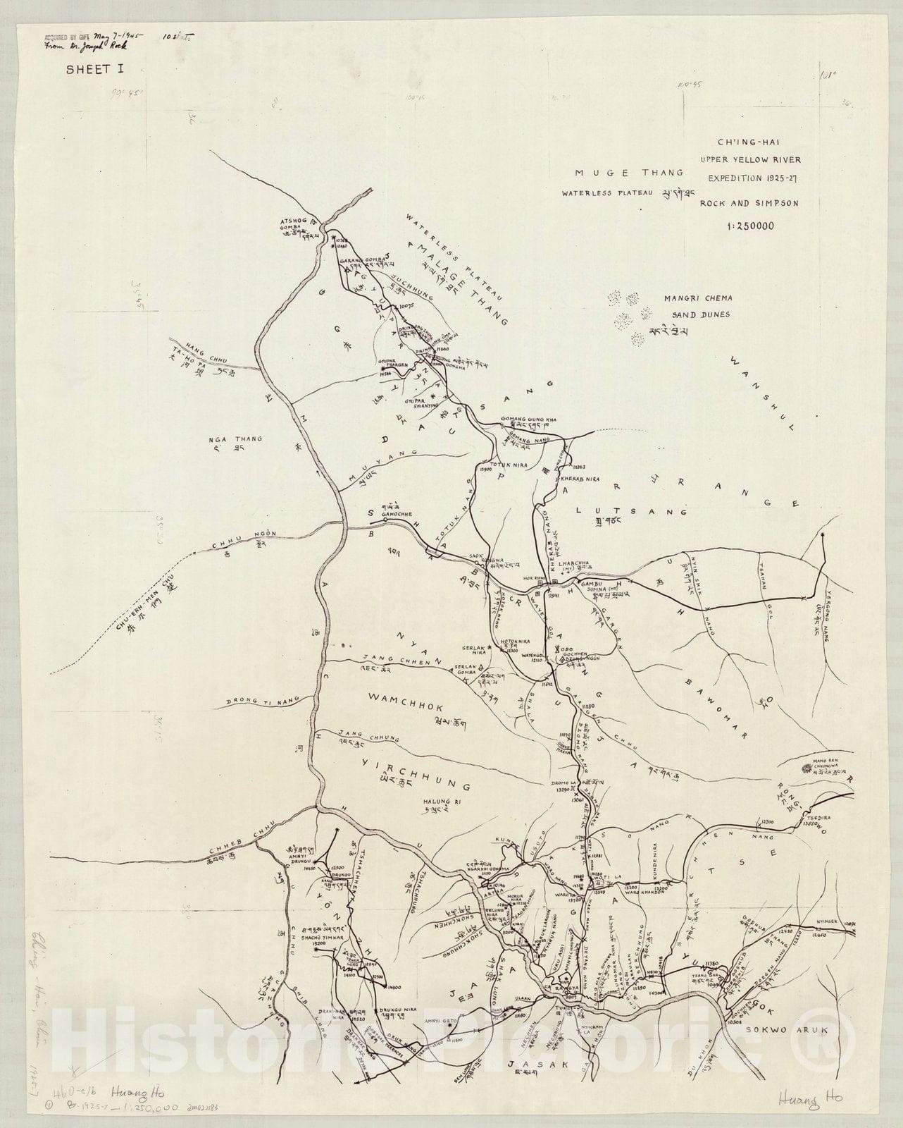 Map : Yellow River, China 1927 1, Ch'ing-hai upper Yellow River expedition, 1925-27 , Antique Vintage Reproduction