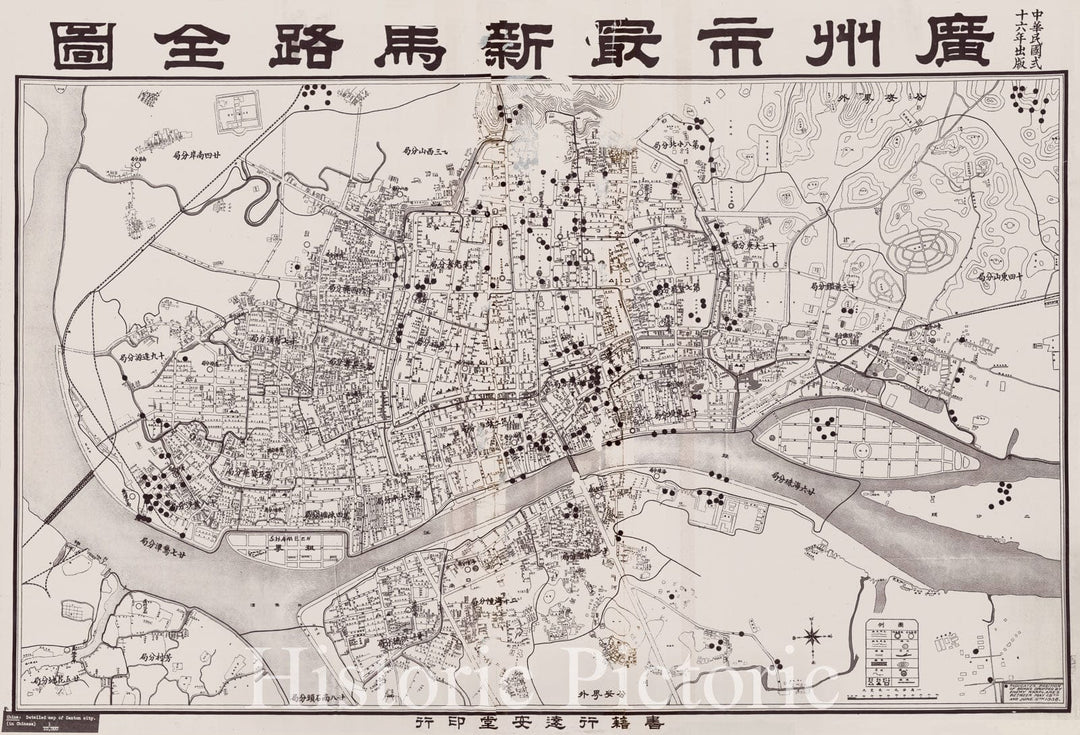 Map : Guangzhou, China 1938, Detailed map of Canton city (in Chinese), Antique Vintage Reproduction