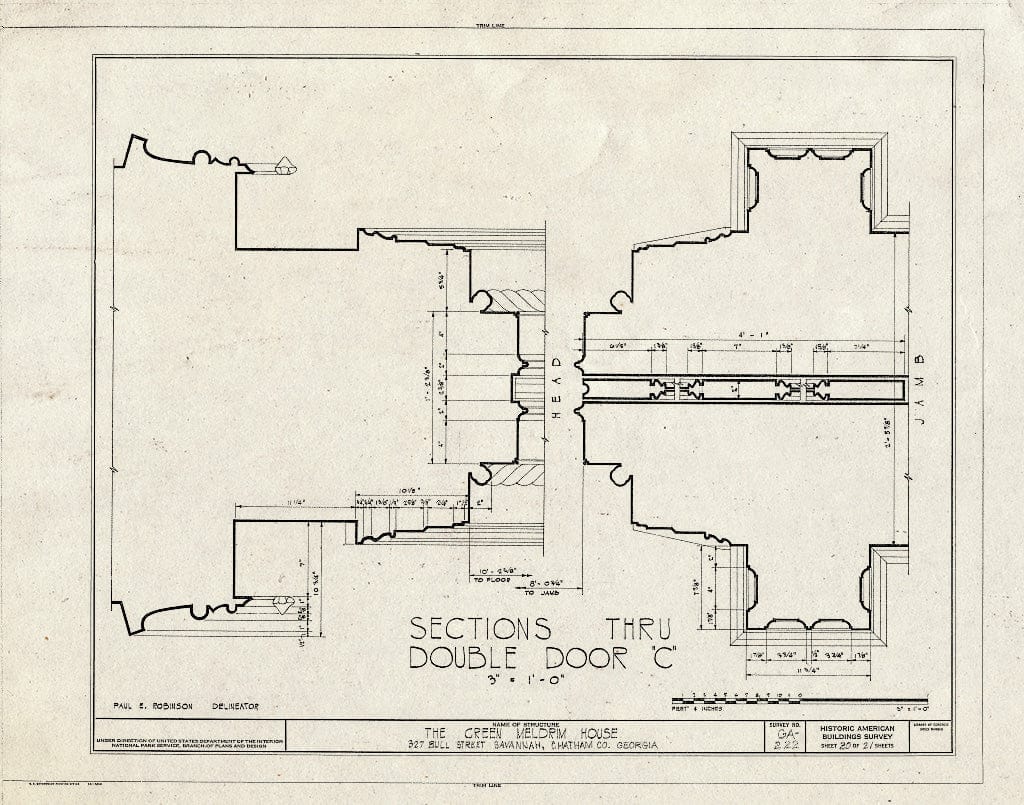 Blueprint 20. Double Door C Sections - Green-Meldrim House, 327 Bull Street, Savannah, Chatham County, GA
