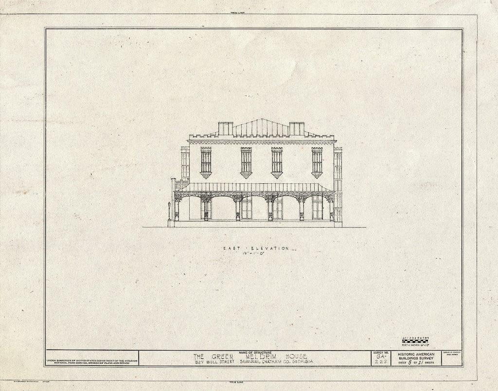 • Blueprint 5. East Elevation - Green-Meldrim House, 327 Bull Street, Savannah, Chatham County, GA