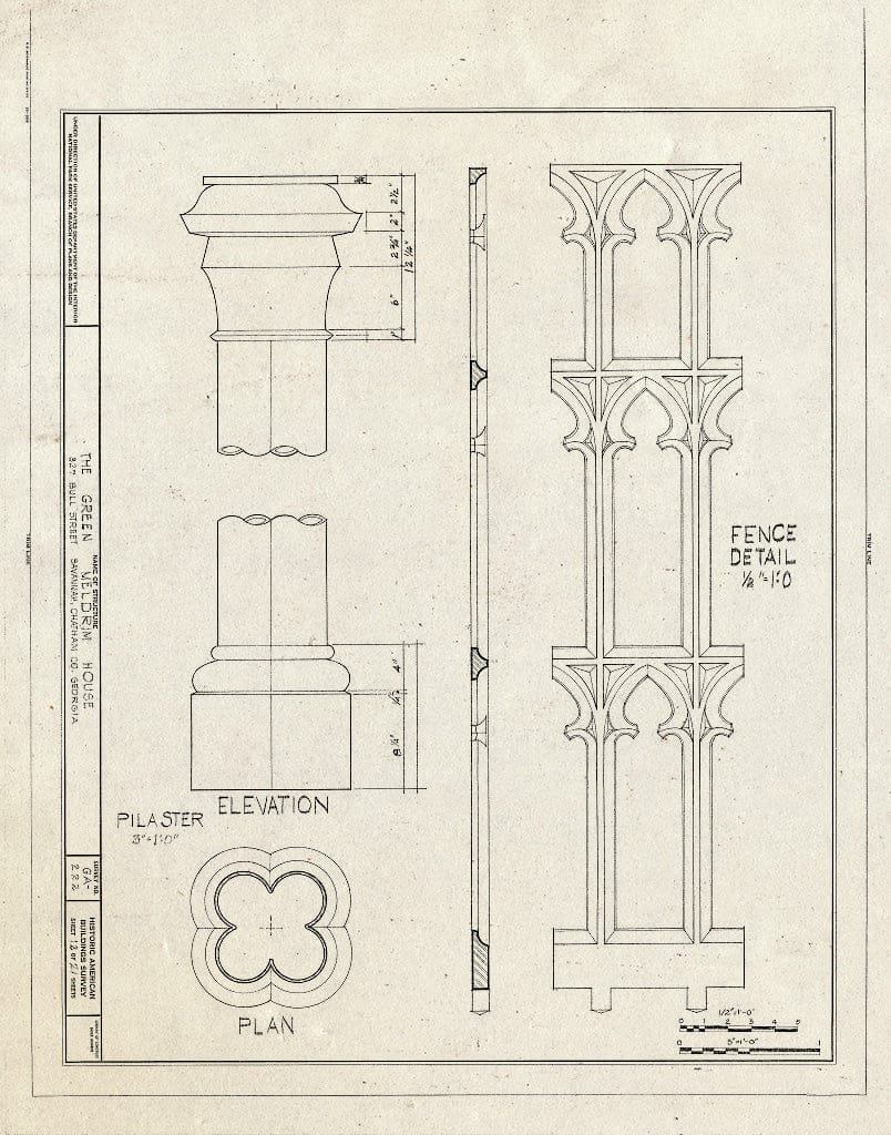• Blueprint 12. Fence Details - Green-Meldrim House, 327 Bull Street, Savannah, Chatham County, GA