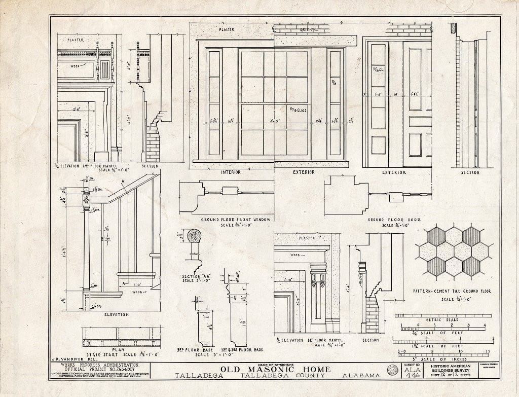 Blueprint HABS ALA,61-TALA,1- (Sheet 12 of 12) - East Alabama Masonic Female Institute, 205 East South Street, Talladega, Talladega County, AL
