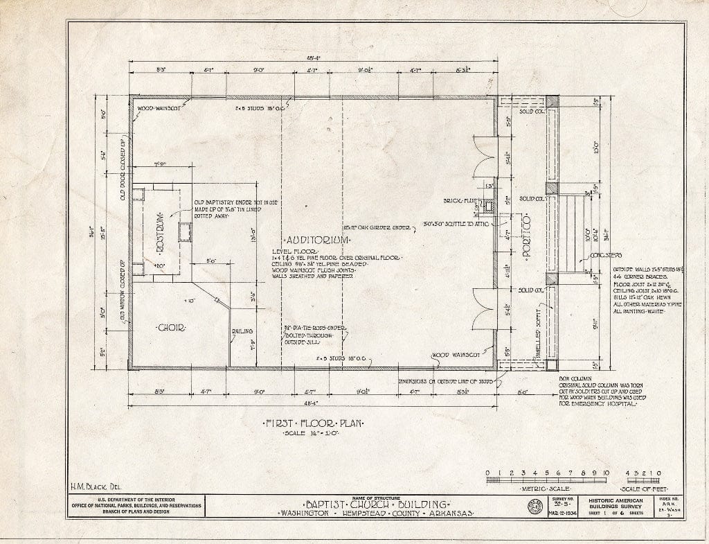 Blueprint HABS ARK,29-WASH,3- (Sheet 1 of 6) - Baptist Church, State Highway 4, Washington, Hempstead County, AR