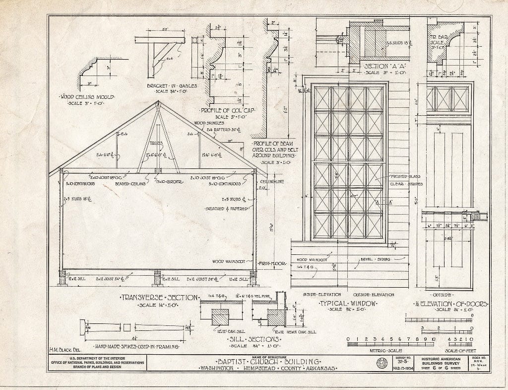 • Blueprint HABS ARK,29-WASH,3- (Sheet 1 of 6) - Baptist Church, State Highway 4, Washington, Hempstead County, AR