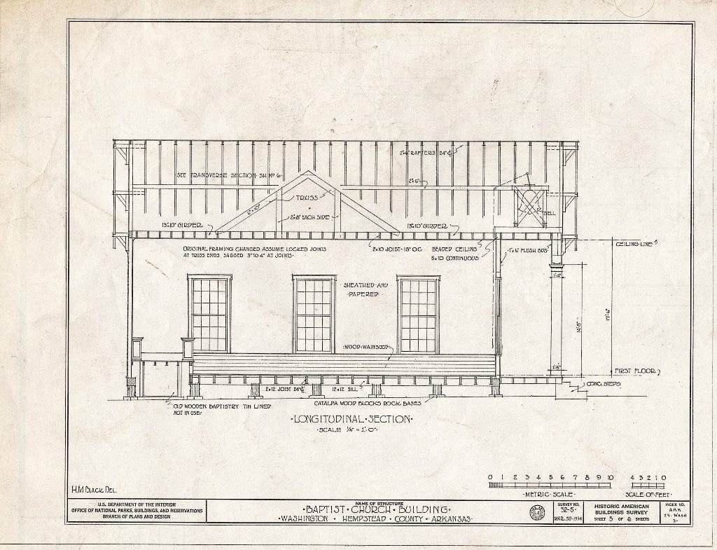 Blueprint HABS ARK,29-WASH,3- (Sheet 5 of 6) - Baptist Church, State Highway 4, Washington, Hempstead County, AR
